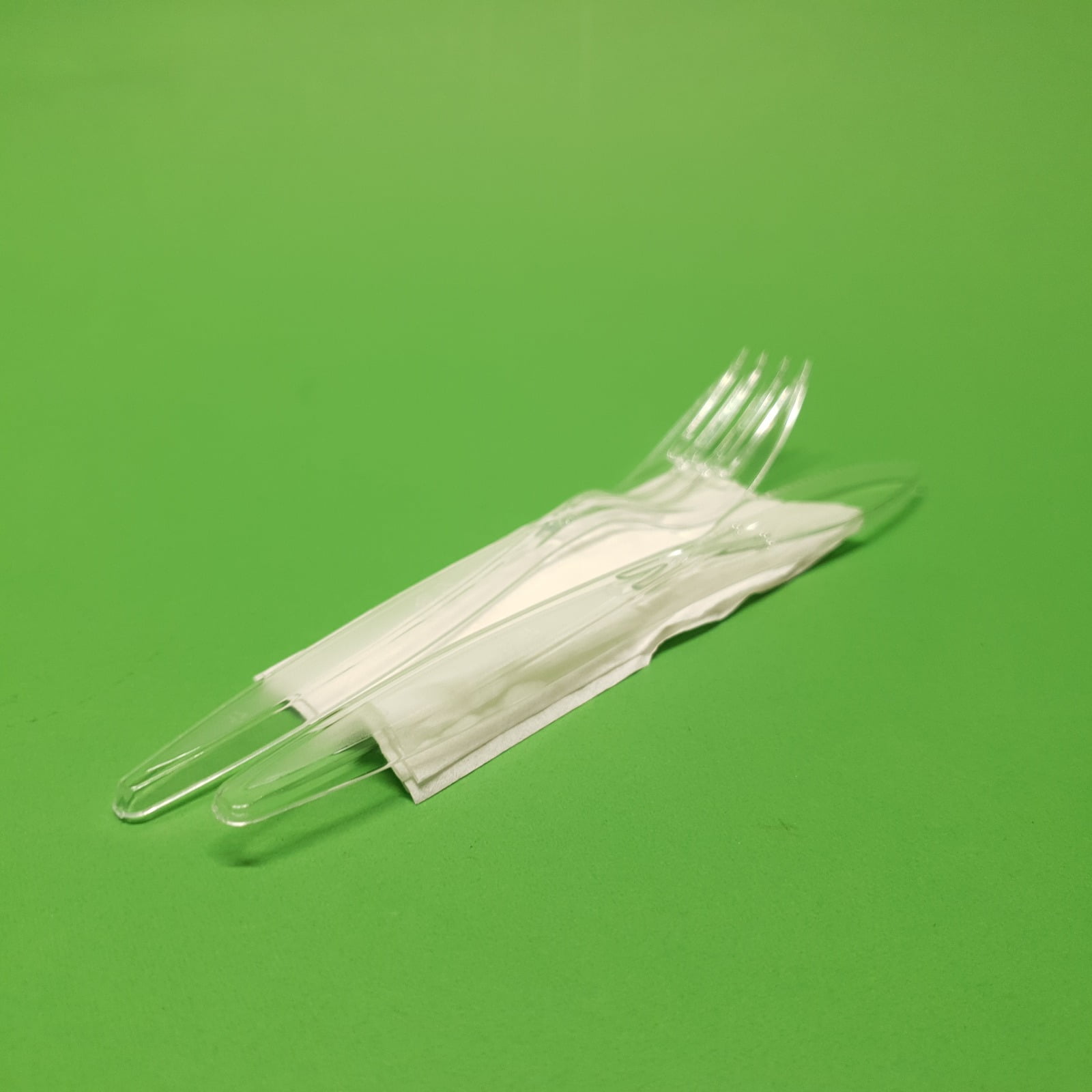 • Setul de tacamuri din plastic compus din: furculita, cutit si servetel, este ambalat individual impreuna cu doua pliculete a cate 2g fiecare cu sare si piper.